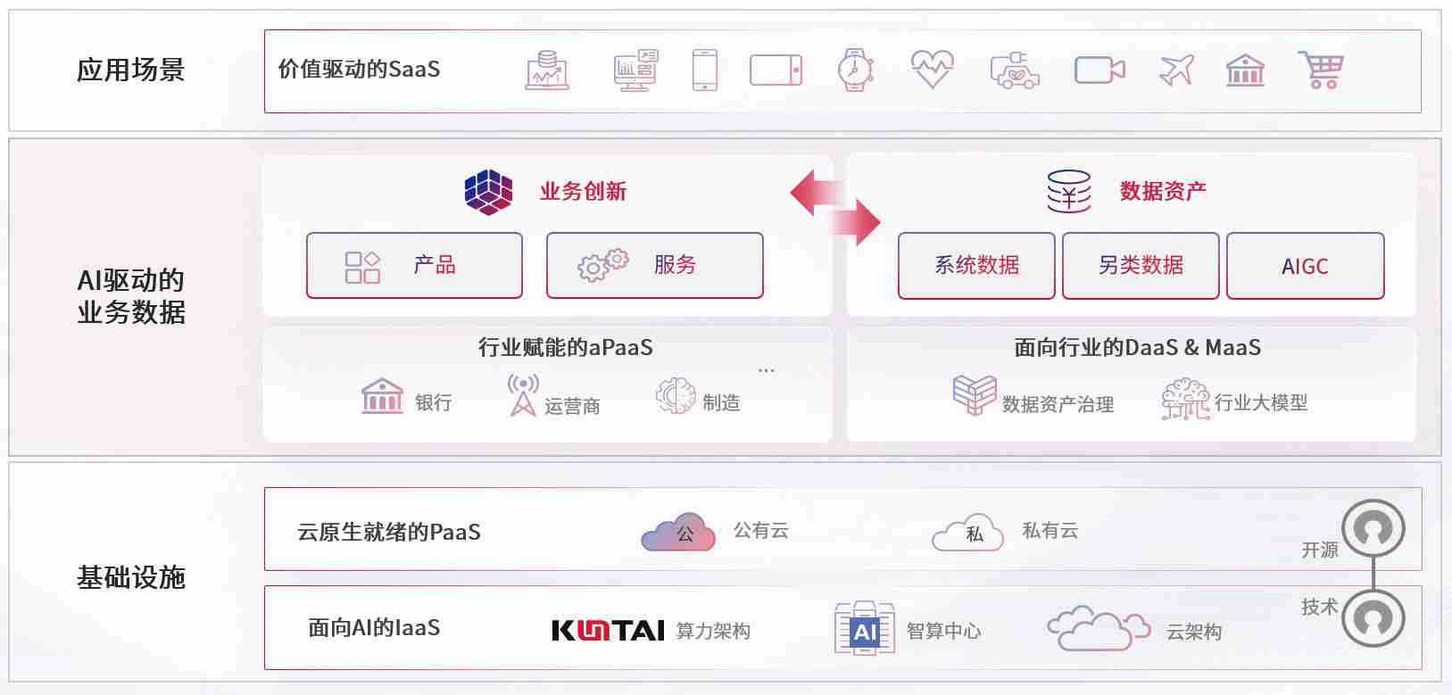 数字时代,,围绕企业数字化转型的关键要素,,,,bst3388全球最奢华游戏数码开创性的提出数云融合战略和技术体系框架,,,,着力在云原生、、、、数字原生、、、、AI原生和信创产业上架构产品和服务能力,,为处在不同数字化转型阶段的快消零售、、、汽车、、、金融、、、医疗、、政企、、教育、、、运营商等行业客户提供泛在的敏捷IT能力和融合的数据驱动能力,,,构建跨界融合创新的数字业务场景和新业务模式,,,助力企业级客户建立面向未来的核心能力和竞争优势,,,,全面推动社会的数字化、、、、智能化转型升级。。